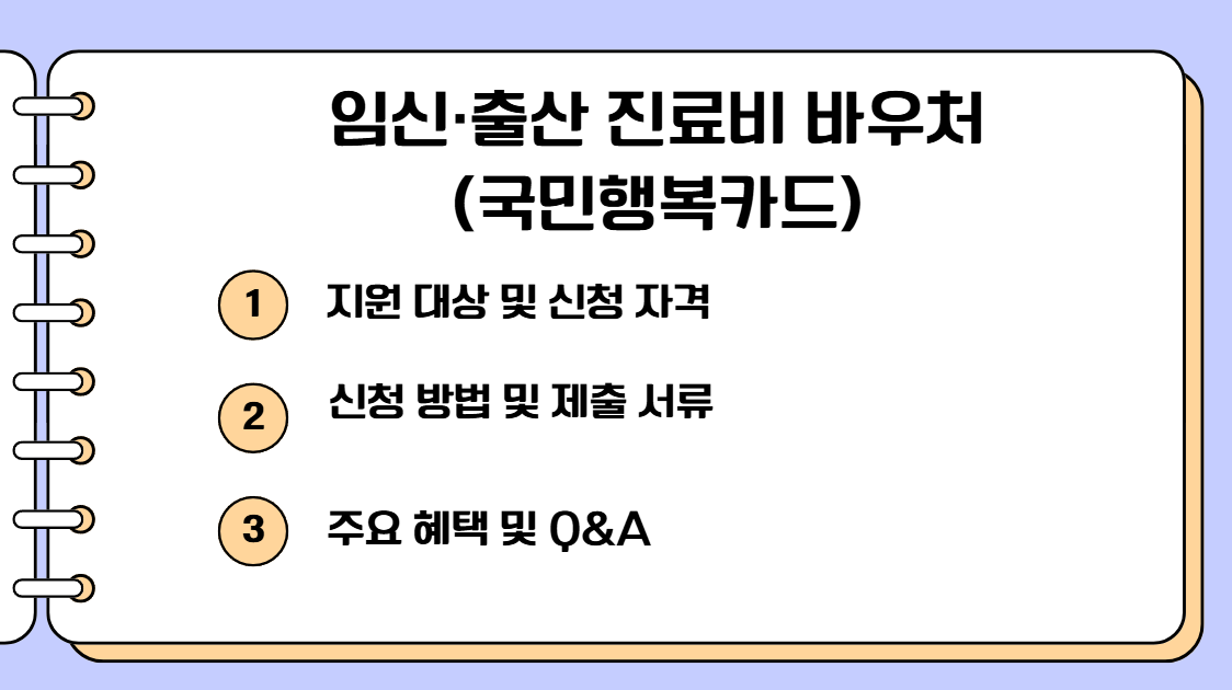 임신·출산 진료비 바우처(국민행복카드)는 임신과 출산 관련 의료비 부담을 덜어주기 위해 정부에서 지원하는 바우처 제도입니다. 임신 1회당 최대 100만 원(다태아 140만 원)을 지급하며, 지정된 의료기관에서 임신·출산 관련 의료비로 사용할 수 있습니다.